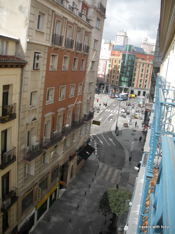 A typical road in Madrid, from our hotel room: