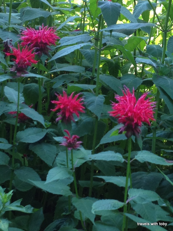 Now that it’s September and fall is right around the corner, I thought it would be a good time to post some summer gardening photos.  First up are some bee balm, black-eyed Susans, pink coneflowers and a cucumber.