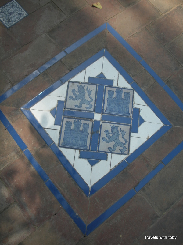 Blue coat of arms tiles in the pathway of the gardens of Sevilla’s real alcázar: