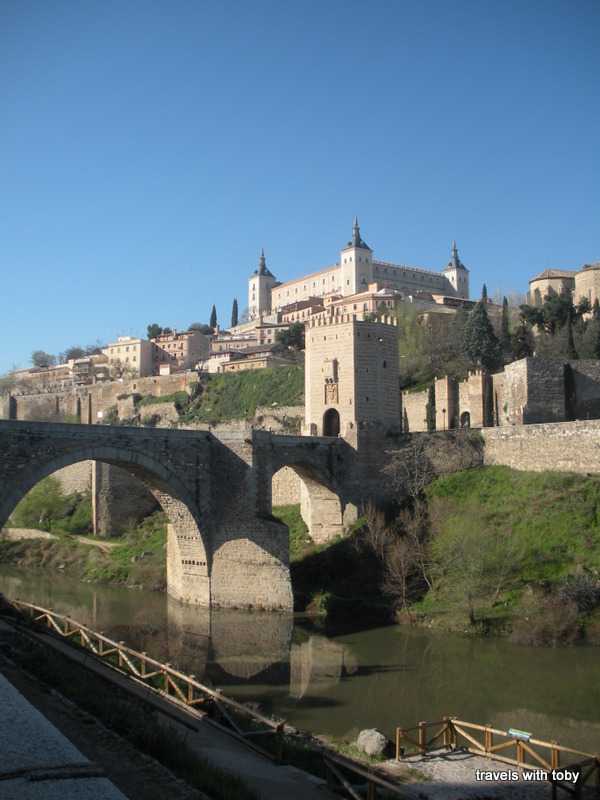 Approaching Toledo on foot from the train station. The sky was a brilliant blue that day: