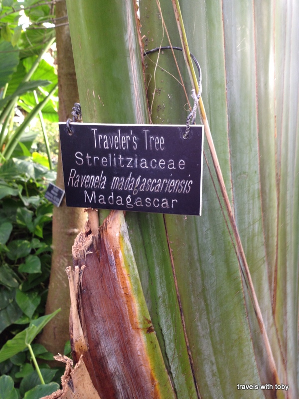 the travellers palm is supposed to contain water in the stalks, so a thirsty traveller can cut it when water is scarce. or so i’ve been told! i think it is in the banana/heliconia family.
