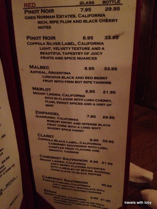 Hubby had the Pinot Noir, Coppola Silver Label and I had the Claret, Coppola Black Label.  Mine was very tasty and I assume his was as well.