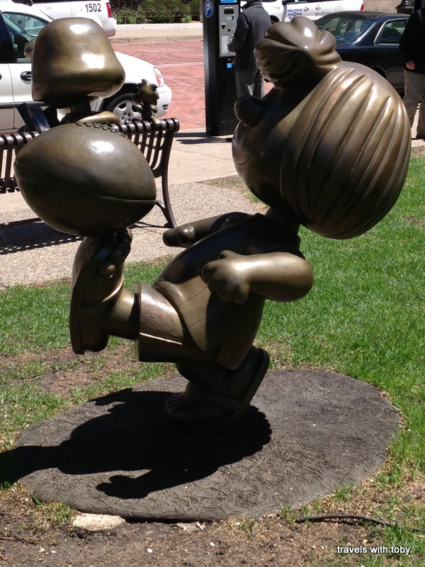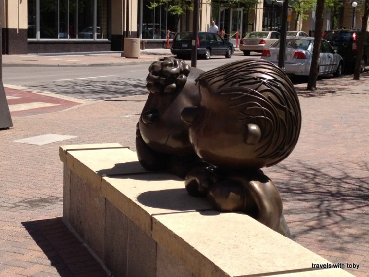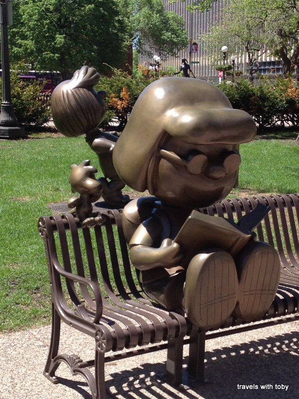 Fun fact about St. Paul: we are proud of Charles Schulz!  Years ago, there were Peanuts statues all over town.  There was a map of all of the statues and we came across many of them.  I am not up on my research of these fun statues but on one of my walks recently I happened upon what appear to be bronze statues of Peanuts characters in Rice Park and beyond.  It was so much fun to find these!!
