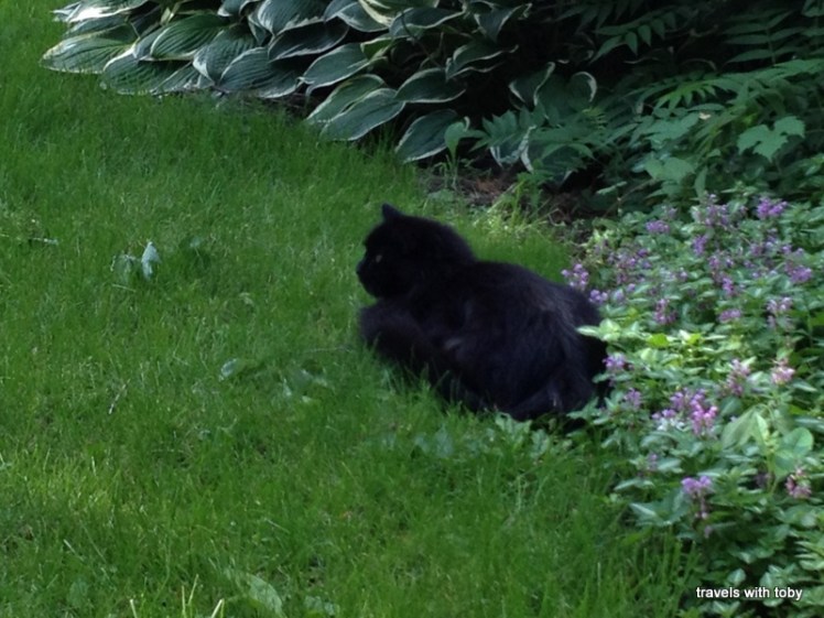 We set up the lawn chairs in our front yard and watched the show.  Fritz joined us: