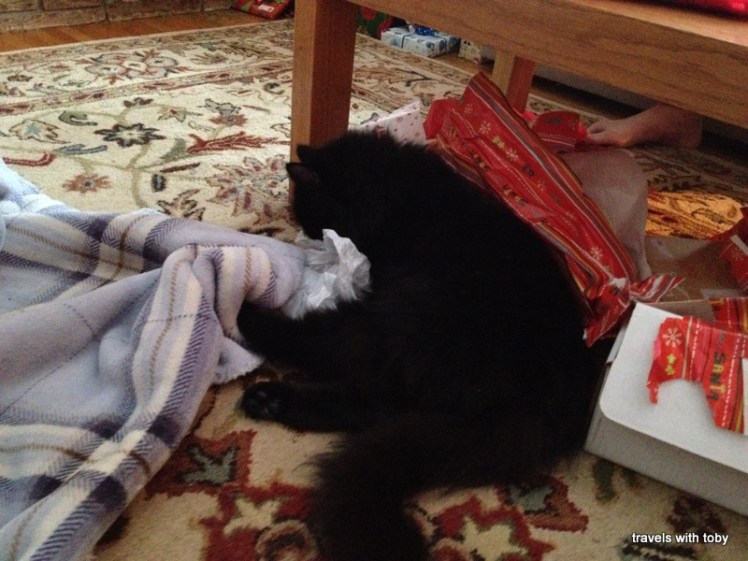 1. yep, Fritz is our feline toddler indeed. wait, shouldn’t he be more like a teenager at 4 years old in cat years? ah well, no matter. we love how silly and playful he is. happy new year to you too!!