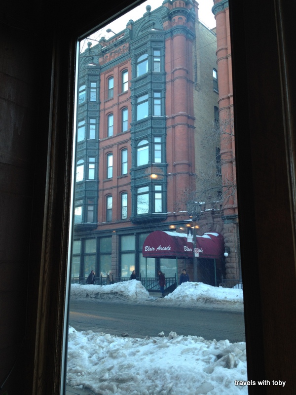 From my recent visit to W. A. Frost & Company, a very nice restaurant in St. Paul, a view out the window from inside the bar prior to our meal in the adjoining restaurant: