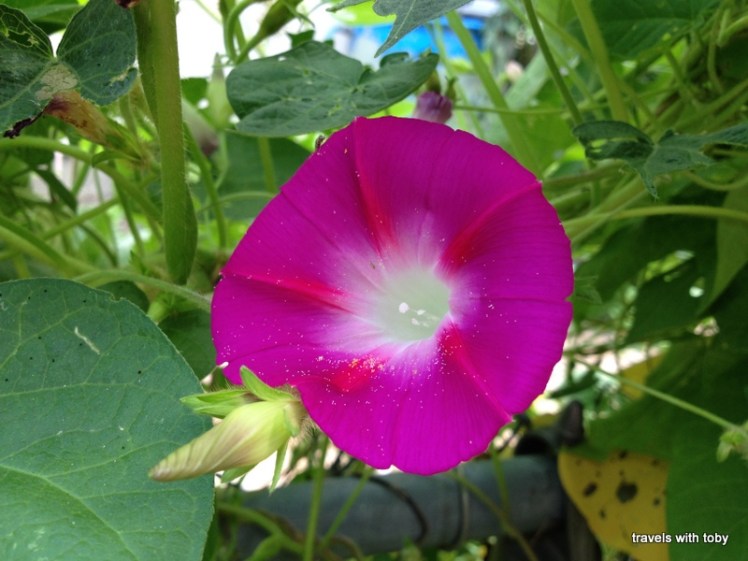 One thing I absolutely love about summer in Minnesota is the abundance of morning glories.  My neighbor planted seeds several years ago and they’ve continued to reseed and make lovely blossoms along our shared fence.  Here are a few of some recent snaps of them that I hope you’ll enjoy.