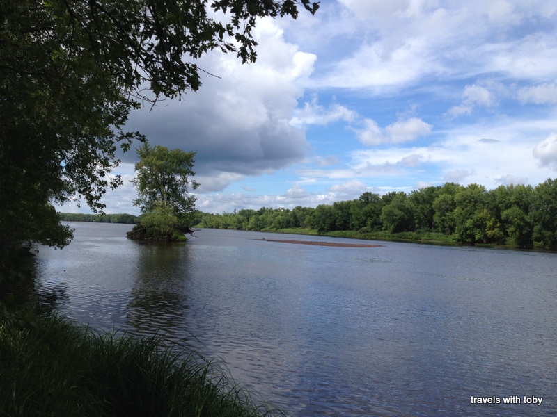 We chose a spot the same way we found the best spot at Jay Cooke: by looking at the map of the campground online and doing our best to choose the most private spot.  And we got “the” best spot at Wild River, according to hubby dearest.  It was rather nice, so nice we’re talking about going back there again.  And likely at the same spot.  Wild River is in a very scenic area along the St. Croix River.  We can see Wisconsin from the banks of the St. Croix.