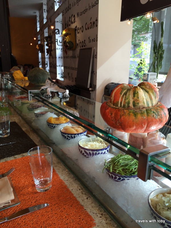 For lunch we opted for this great Mexcian place just a couple of blocks from the museum. We felt a little awkward when asked if we had a reservation. Luckily they did have a table for us. Our waiter advised us on how to order our meal. They feature antojitos, or small plates of food. It is suggested that you get 4-5 antojitos to share then each of us choose a protein from the other side. We opted for two items to share and we each chose an item from the other side of the menu. Everything was fantastic! Come along and see what we had for lunch that day. First some restaurant scenes: