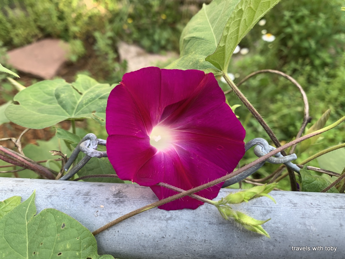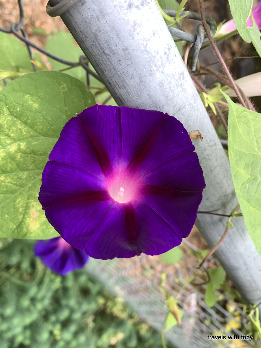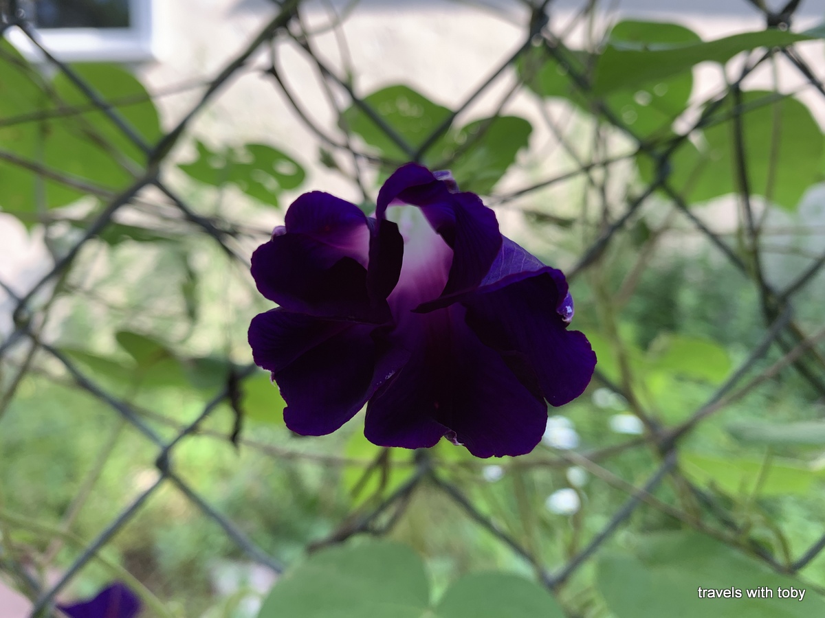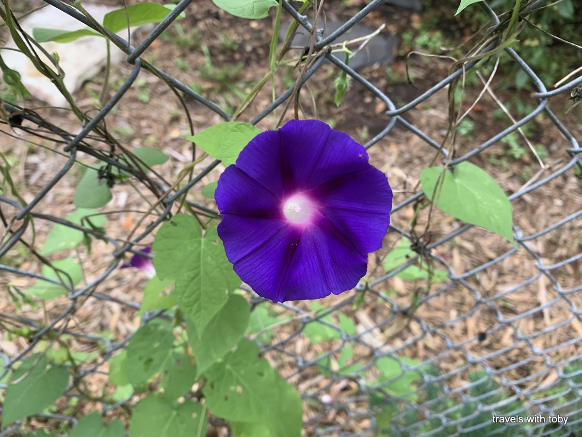 I was going to do a post with photos of my morning glory fence from this summer, alas, this year’s morning glory fence did not turn out to be as spectacular as in years past. In cleaning up her yard, my neighbor probably didn’t realize that by yanking the morning glories that had wandered into her yard via her side of the fence, it destroyed a big part of the garden of morning glories on the fence. But I did manage to capture a few nice blooms. I included photos of the fence, before and after the clean-up.