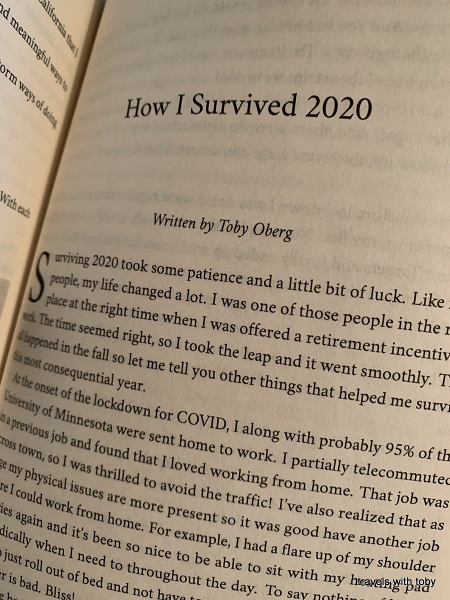 The year 2021, another year living in a pandemic. It was also the year we celebrated our 30th anniversary. Wow, that went fast! I also entered an essay contest and while I didn’t win a prize, my essay was selected to be printed in a book. My first real publication! Too bad the publishing company went out of business so I don’t think anyone can buy the book any longer. But I share a photo of the first page in the gallery below.