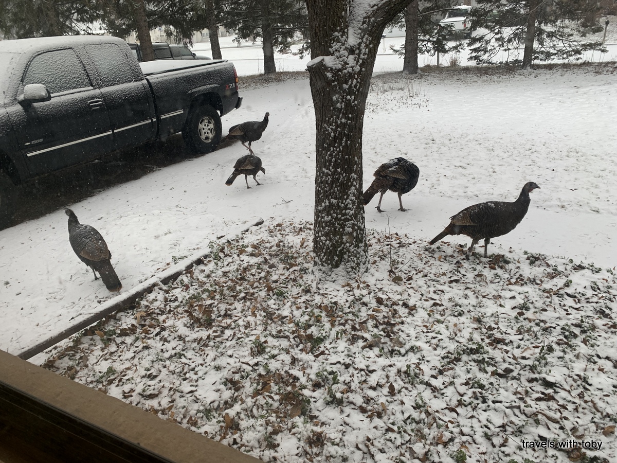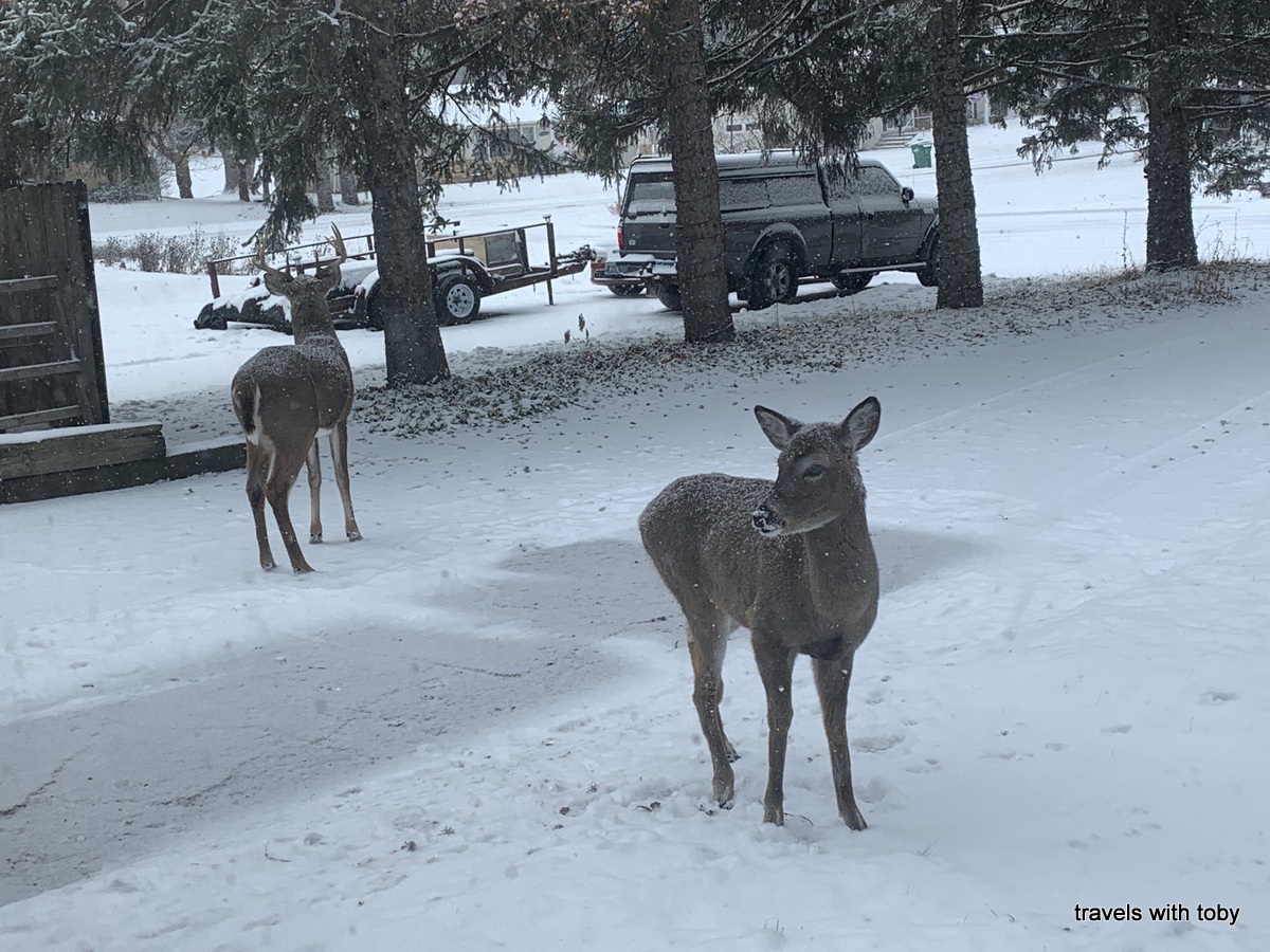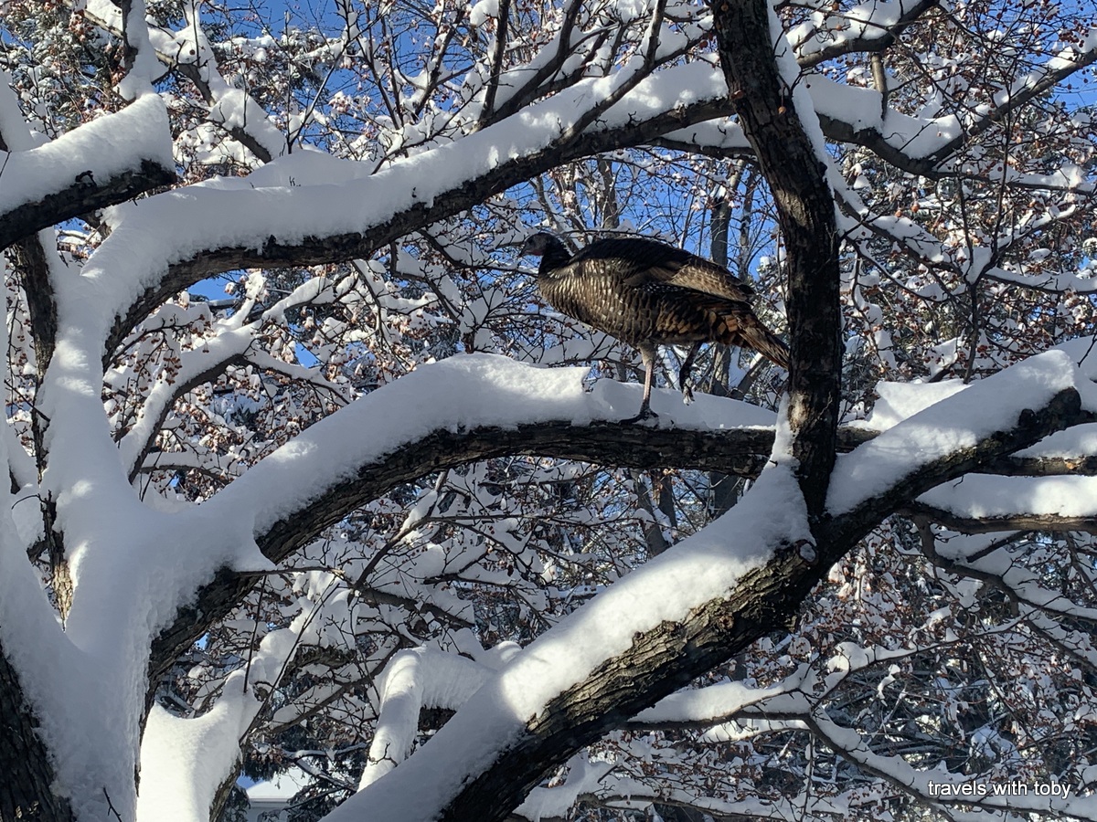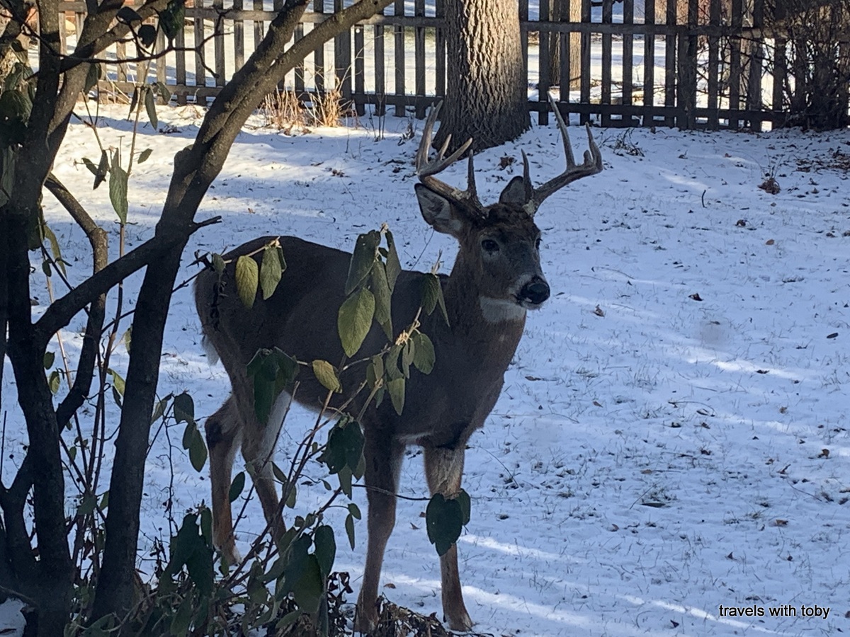 Also included towards the end of the second gallery are photos of the deer that came to visit in December. The buck arrived in our backyard early in the month. A few days later he showed up with his doe in the front yard. After that there were three does. They seem to enjoy the crabapple berries that had fallen to the ground. There is one photo of them camped out in our yard after it snowed a few inches. As I write this on new year’s eve they’re still coming around! There was one day where the deer were here in the morning and the turkeys arrived in the afternoon. They too love the same berries in our front yard. So funny! It’s a wildlife wonderland at my house 😊