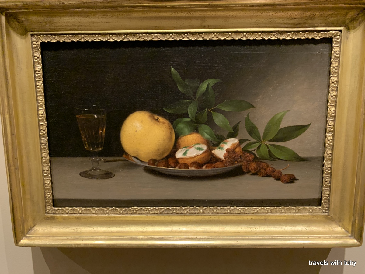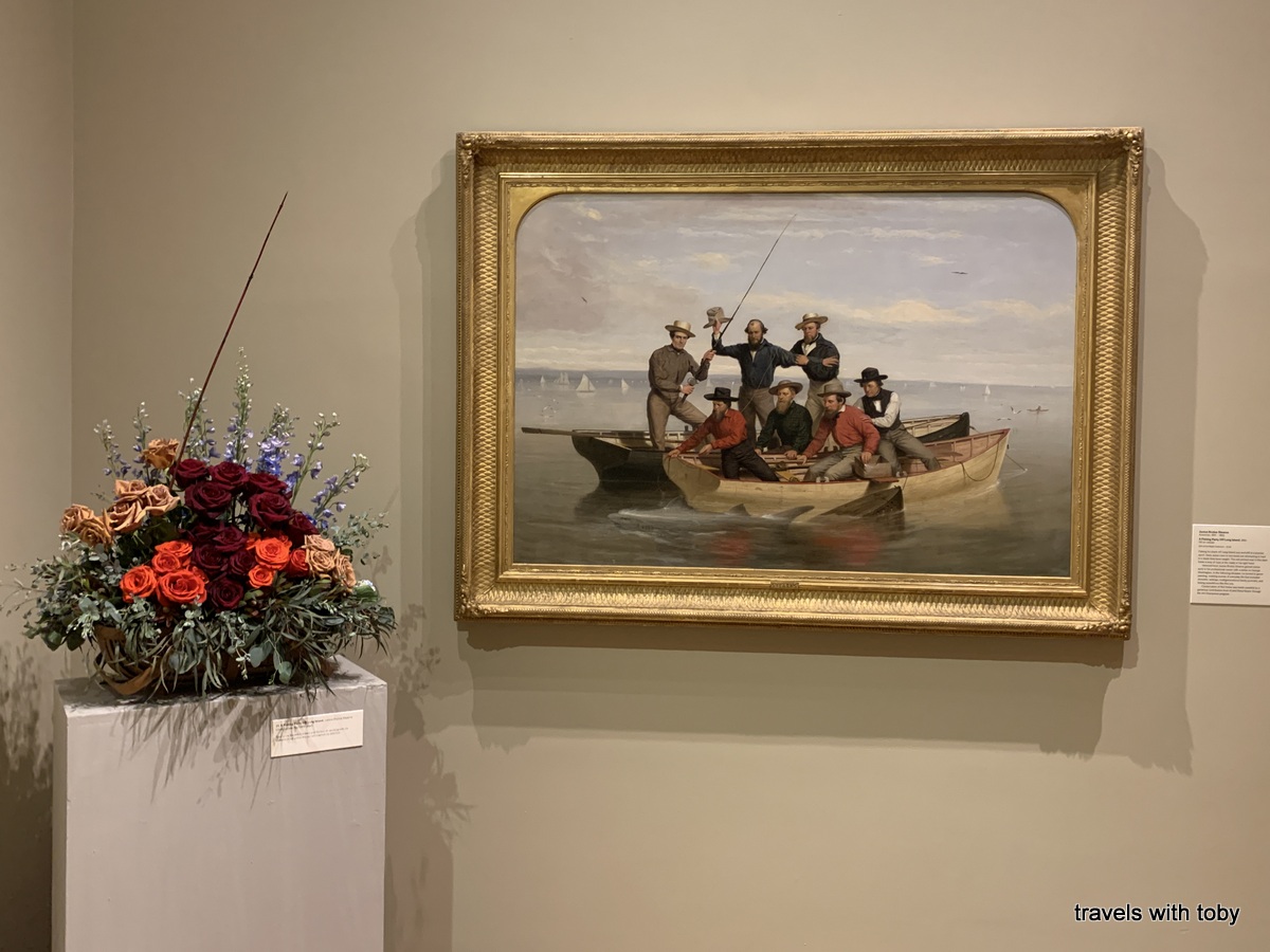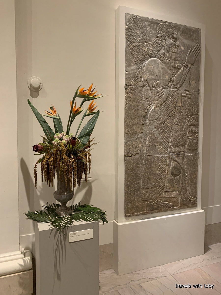 The museum was still pretty crowded but we managed it okay. I’m not a big fan of crowds and there were tour groups that we had to maneuver around, but it wasn’t too bad. We typically don’t spend many hours at museums and my husband describes what happens as “my eyes are full”, meaning you can only see so much art all at once. But we sure enjoyed what we saw. We didn’t have a plan other than to start on the third floor then work our way down. And we just wandered from gallery to gallery looking for floral arrangements. We saw so many pieces that we had never seen before, and all because there were flowers next to them.