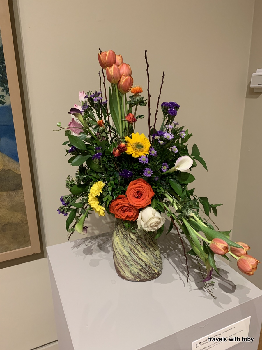 Every year, except for 2020 and 2021, the Minneapolis Institute of Art holds Art in Bloom. I think it’s the same weekend each year, and this year it was held the last weekend in April, beginning on Thursday, April 28th and ending on Sunday, May 1st. Artists send in applications to be chosen to interpret one piece of art with flowers. It is fascinating and inspirational to see how well the floral arrangements match the work of art.