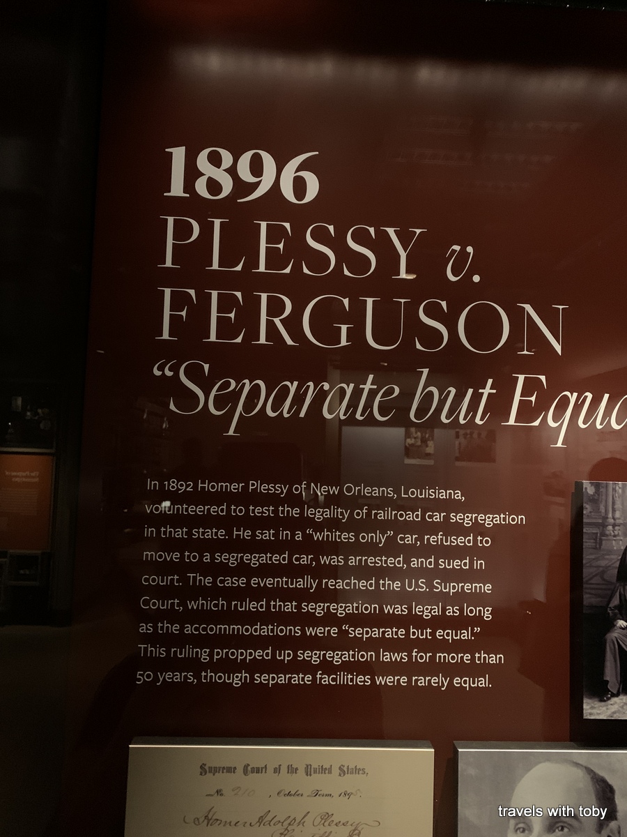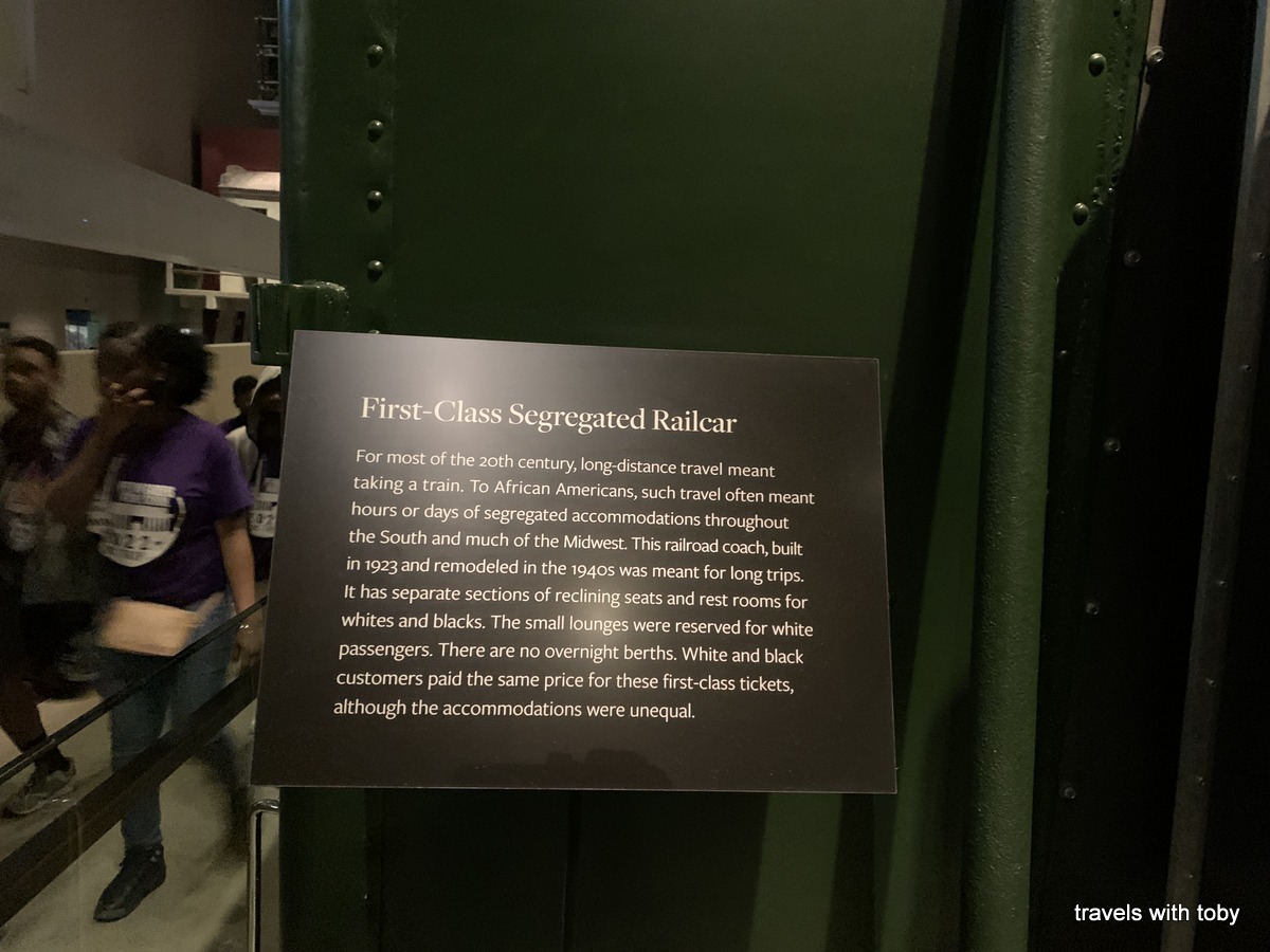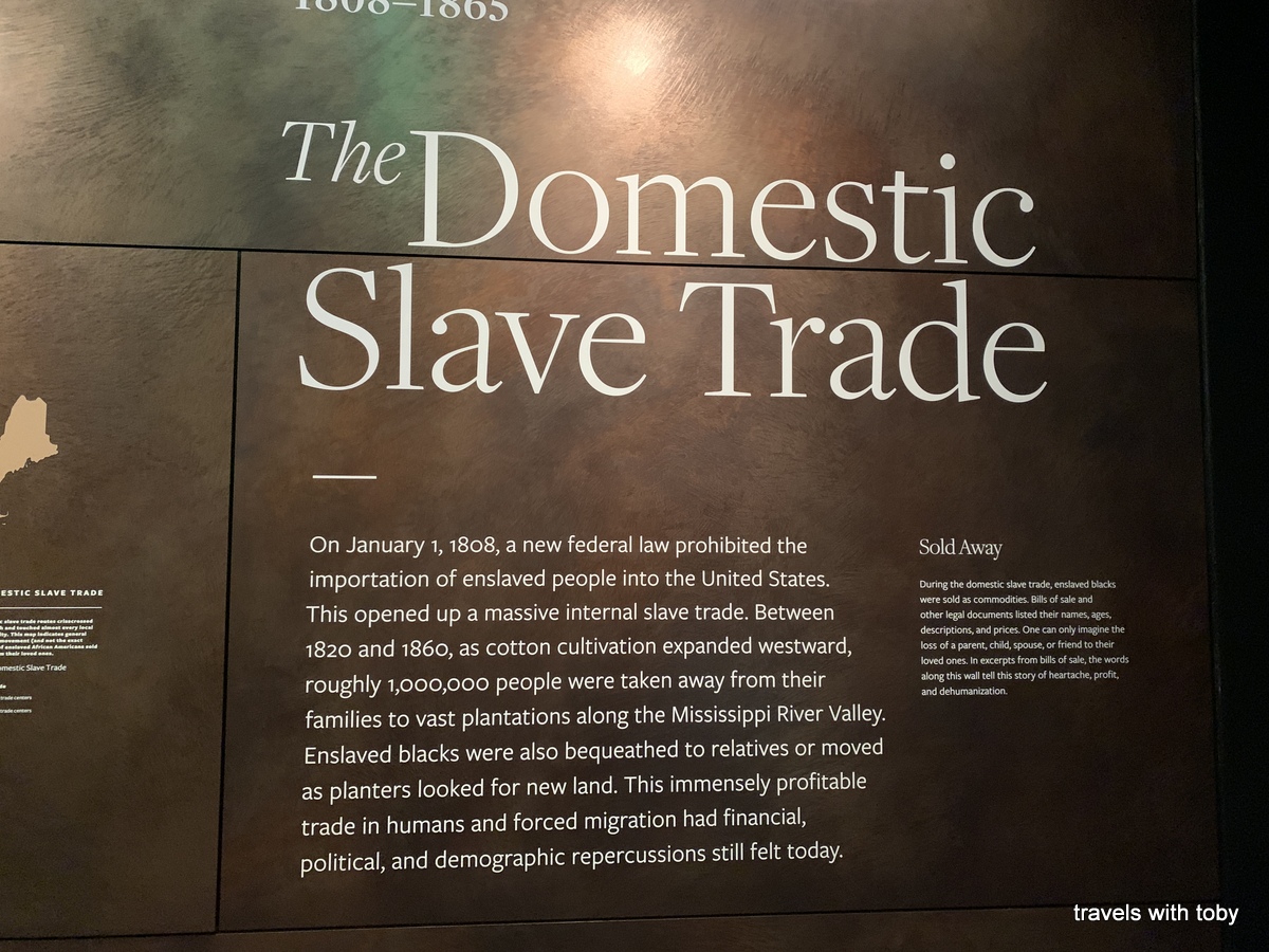 Neither of us can spend more than two hours in any museum. It is just so much information that our brains get full and we need a break. And so it happened again with this morning’s museum. We spent so much time on the 4th floor that we rushed through the lower levels about slavery. Again, there is so much information and it is truly well done. You work your way through history of the slave trade and the many years of slavery. One of my favorite parts of this museum is coming up that last ramp on the lower levels to a huge photo of Barack Obama’s inauguration on January 20, 2009. It still gives me the chills! And it’s so well placed.