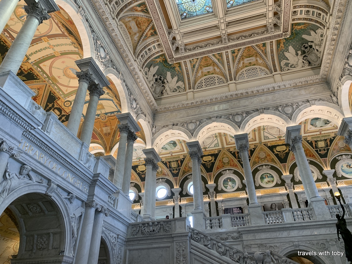Such a beautiful building inside!! And of course it’s full of history. There was no guided tour this time but there were museum clientele throughout to inform about the Gutenberg Bible, the Reading Room overlook and other spots throughout. We didn’t stop at all of them but really enjoyed the beauty and ornate decorations within. We also saw the Rosa Parks exhibit which was very interesting. I highly recommend a visit to the Library of Congress.