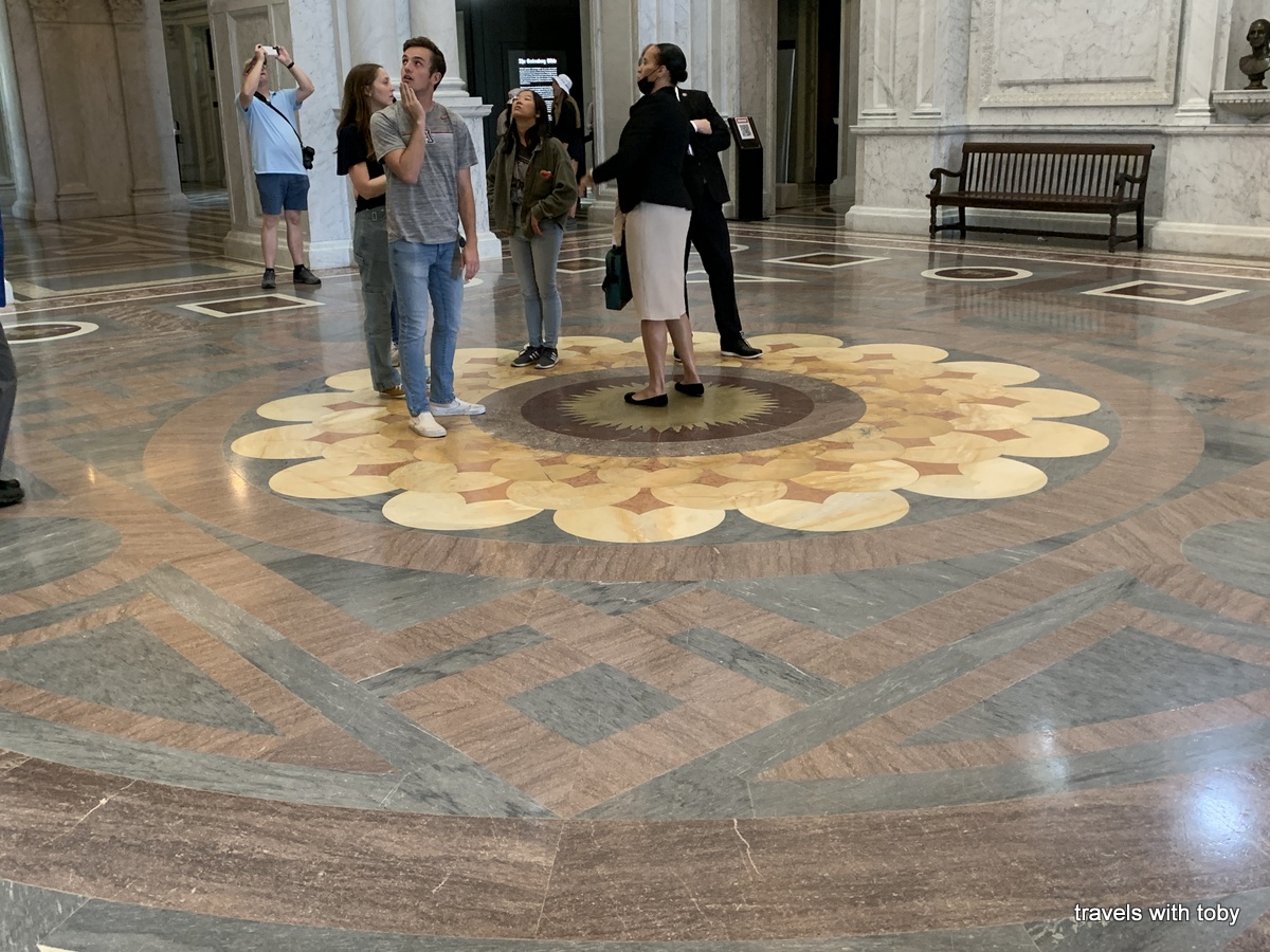 We chose 3:00 to visit the Library of Congress. This was one attraction whose hours changed between February and May. I was worried we wouldn’t have enough time at the Library of Congress because previously it was going to close at 4:00, but they extended hours on Thursdays which was the day we planned to visit so that worked out well. We got there a little early and they let us in.