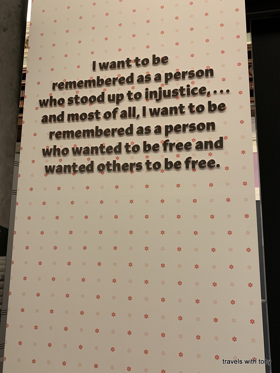 We did not have time for the 2nd and 3rd floors which covers sports, the African American Military and an “Explore your family history” section. There is so much in this museum that it seems impossible to view it all in one visit, at least for us. I think you could probably spend an entire day at this museum and not see it all. Even so, we really enjoyed our time there and we both bought shirts in their gift shop. Following is a gallery of the National Museum of African American History and Culture.