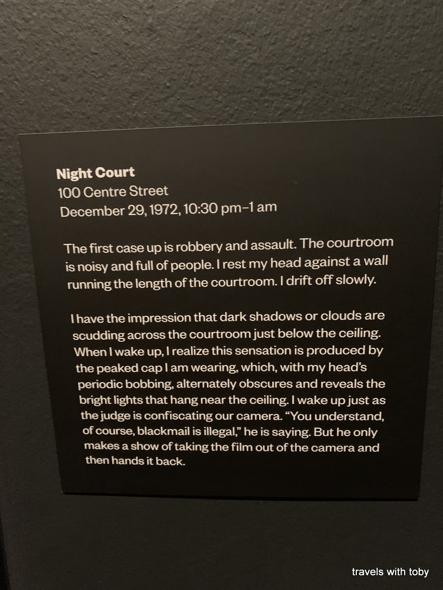 In Gallery 5 were photos of her asleep in different places. She wanted to sleep in various public places to see if it would influence her dreams. There are photos of her asleep near the water on Coney Island in January, another in a night court room and yet another in a women’s bathroom at Columbia University. So interesting! Such an imagination!