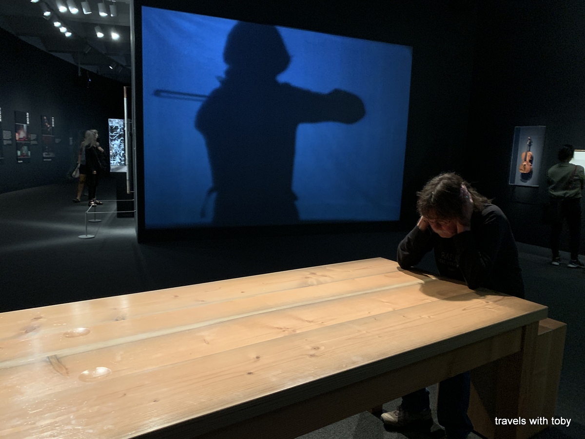 All that said, we both really enjoyed Laurie Anderson’s The Weather exhibit at the Hirshhorn Museum. She’s probably not everyone’s cup of tea but she is one very talented individual! And apparently is a Grammy winner, which I learned after visiting this exhibit. I had hoped to post this in time for others to see the exhibit, alas, it’s ending today August 7, 2022. Instead, I hope you will enjoy the photos that I took. Here is an intro from the museum about Laurie:
