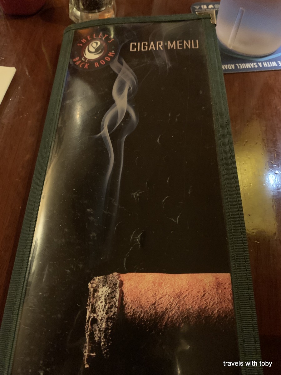 About a week before our trip I learned about a cigar bar that was right on the way to our afternoon visit to the Phillips Collection. Hubby likes a cigar every now and again so we had to check it out. Shelly’s Back Room is also a restaurant and the food is pretty good. As you walk into the main room you see many comfortable looking chairs along the wall and a wall with humidors. Customers rent a humidor so when they come in they can just get a cigar out of their humidor. Hubby had a huge menu of cigars to choose from. He really enjoyed his cigar and I like the smell of cigar smoke as it reminds me of my Uncle Nate. Win, win 😊