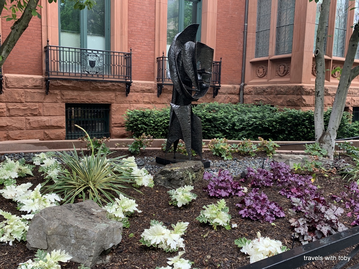 I had hoped to walk through the sculpture garden that is just outside the Hirshhorn but it was lightly raining and a bit cold and windy. As such, we decided to hail a cab to take us to our lunch spot. That worked great because we had just enough time to eat and for hubby to enjoy a cigar before heading to our last event of the trip, and one I had really been looking forward to, the Phillips Collection. We did walk through part of the sculpture garden on our way to a busy street to get our cab. Here’s a handful of photos that I took.