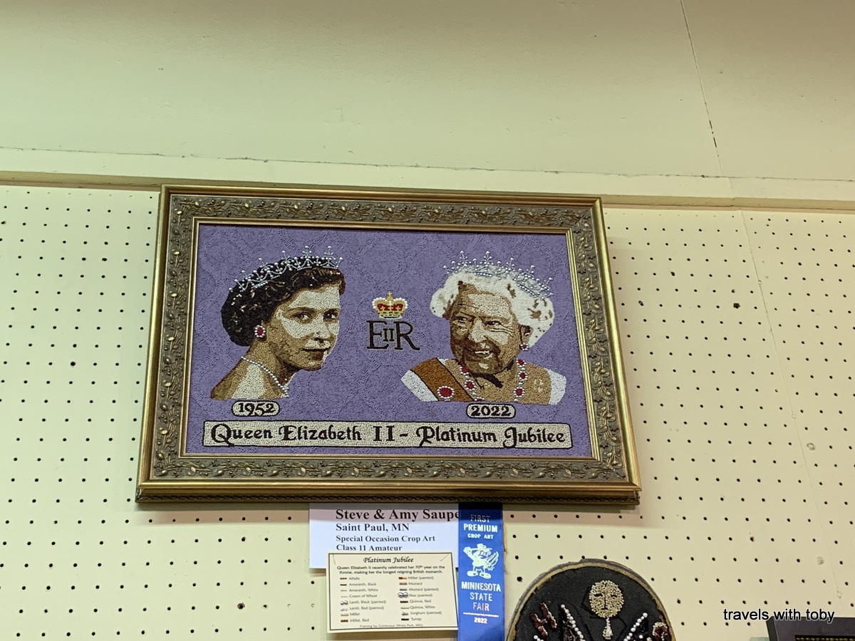 And I may have been the first one in the Agriculture building when it opened at 9:00. Well, I certainly was the first one in that door. And I headed right to the crop art: no line!! There were maybe 3 or 5 of us checking out the crop art. Now this is the way to do it! We perused the flower displays in those rooms of the Agriculture building as well. They rotate every two days so these were different displays than opening day, and we didn’t even venture into the flower rooms on opening day. Just too many people for my comfort level.