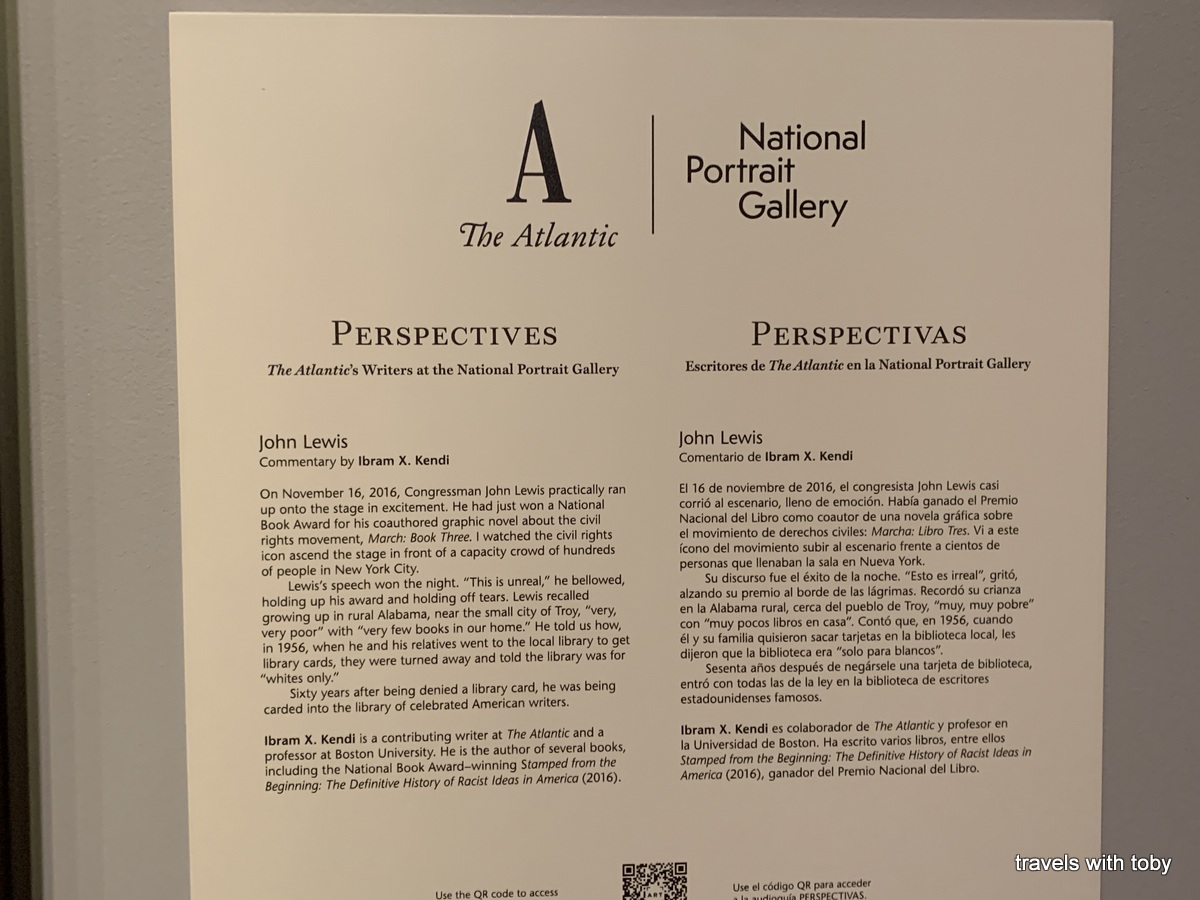 We had also talked about getting on the Circulator bus after the Portrait Gallery. That bus takes you around the mall and the monuments in and around the Tidal Basin. However, it was yet another hot and sticky day and by the time we were done at the Portrait Gallery neither of us had much energy for anything else. Plus, because of the heat and humidity both of us needed to shower again before the dinner that night.