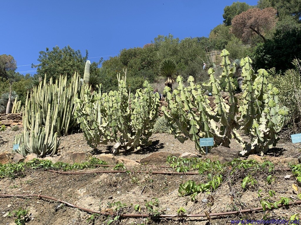 Continuing my series of posts about our trip to Spain in May, this post is about our visit to Malaga’s botanical garden. We had such a pleasant day at the Jardín. It is so lovely and full of all kinds of plants and trees and flowers. And this time there were many sculptures throughout and those were so interesting. The weather was perfect for a spring day, sunny and in the upper 70s. As you can see from the map below, there are many trees offering enough shade if we got too hot. It’s about two miles from one end to the other.