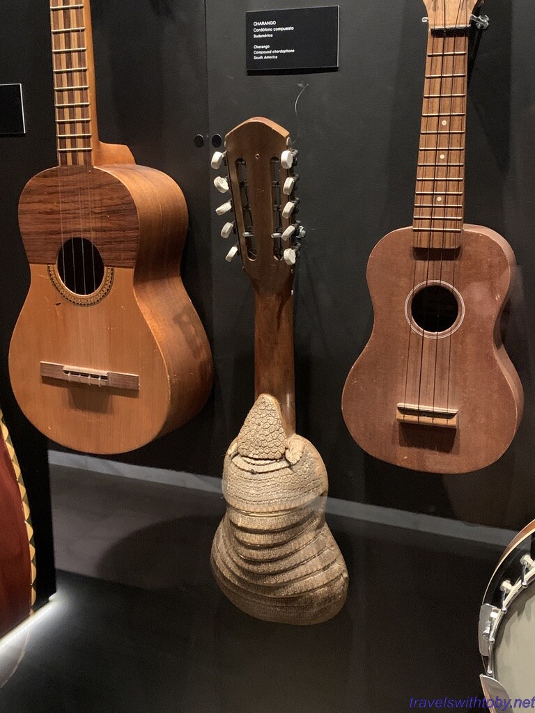 This definitely exceeded our expectations even though the museum is small and you can get through it in about an hour. So many interesting instruments and you can see how creative people are in making some of these instruments, especially the stringed instruments. Many of these were made from whatever was available, like aluminum or tin cans, armadillo shells and even snake skins. When people want to make music, they will find a way!