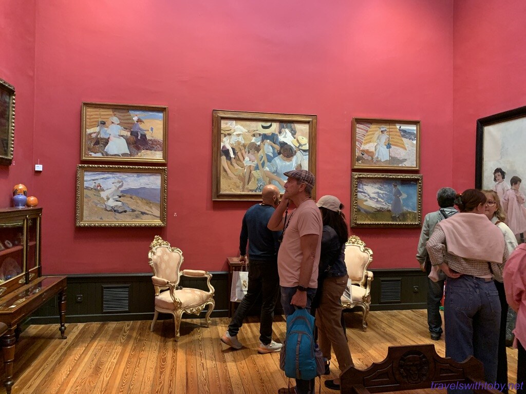 The next gallery is a collection of the art on the main floor as well as Sorolla’s work area and tools. It was fascinating to see all of this. I love the beach scenes. I’m not sure I would have painted all the walls red, but it did make the art stand out.