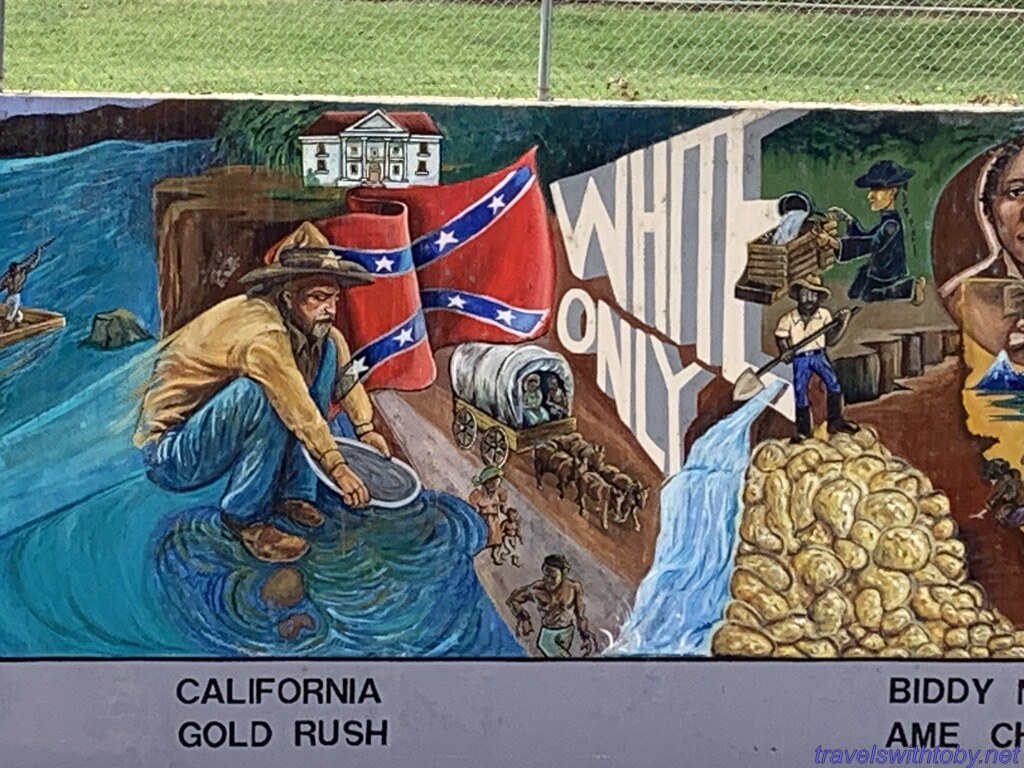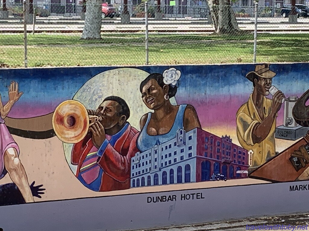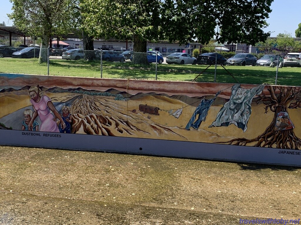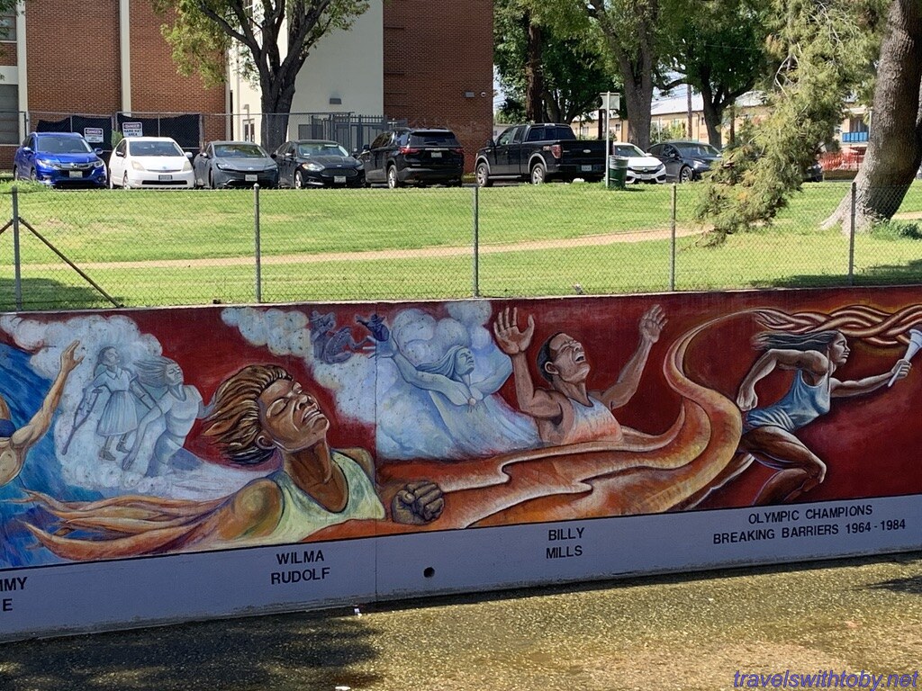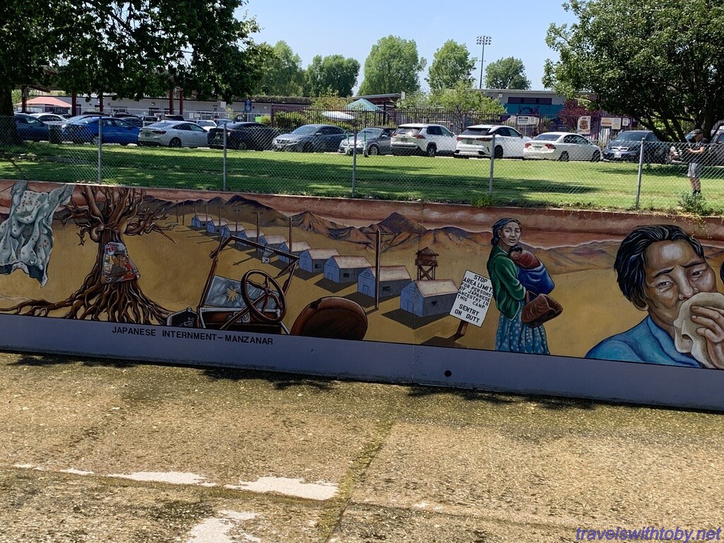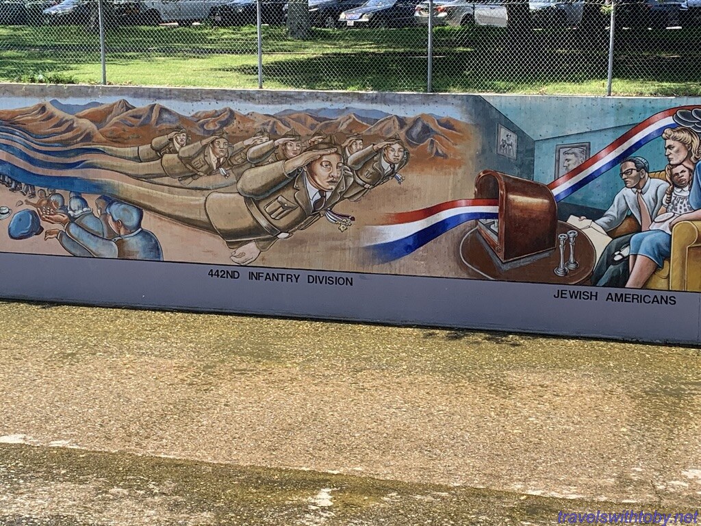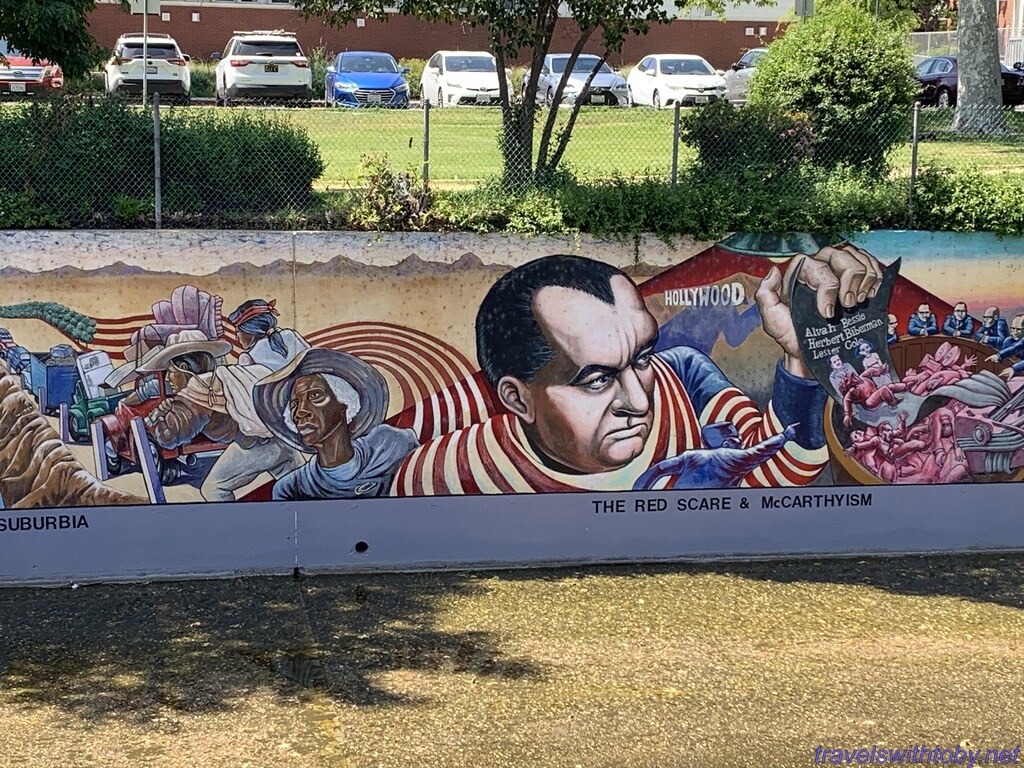 We visited twice because we didn’t know the how long it was on our first trip. I didn’t research it prior to going the first time, did so afterwards and learned it was a half mile long. We started at the more current end, at the corner of Oxnard Street and Coldwater Canyon, and worked our way backwards. On our second trip, we started at the beginning and followed it to where we stopped the week before. So interesting and so many great scenes. There are several spots with lists of the artists and I’ve included a photo of one of those.