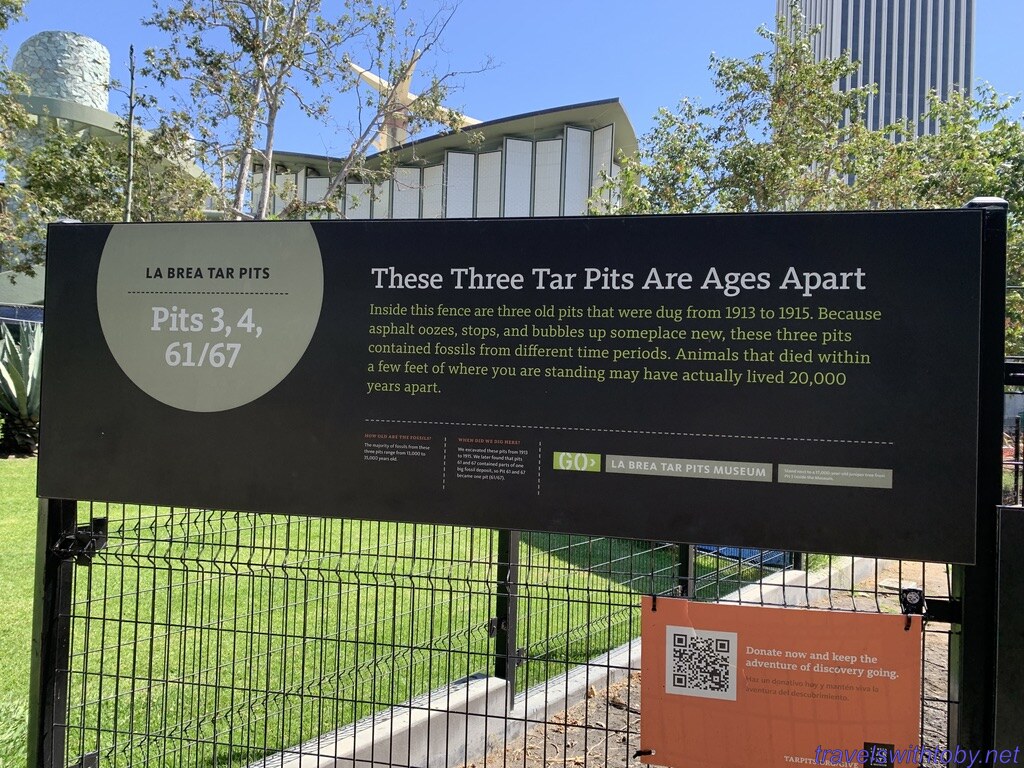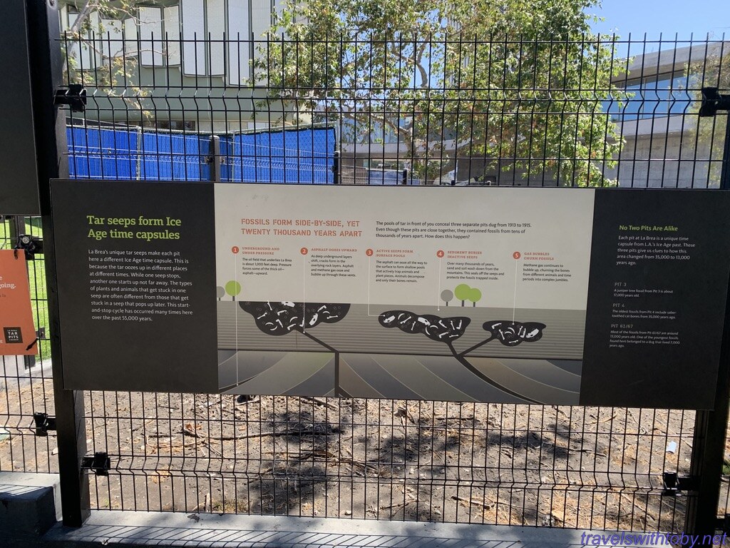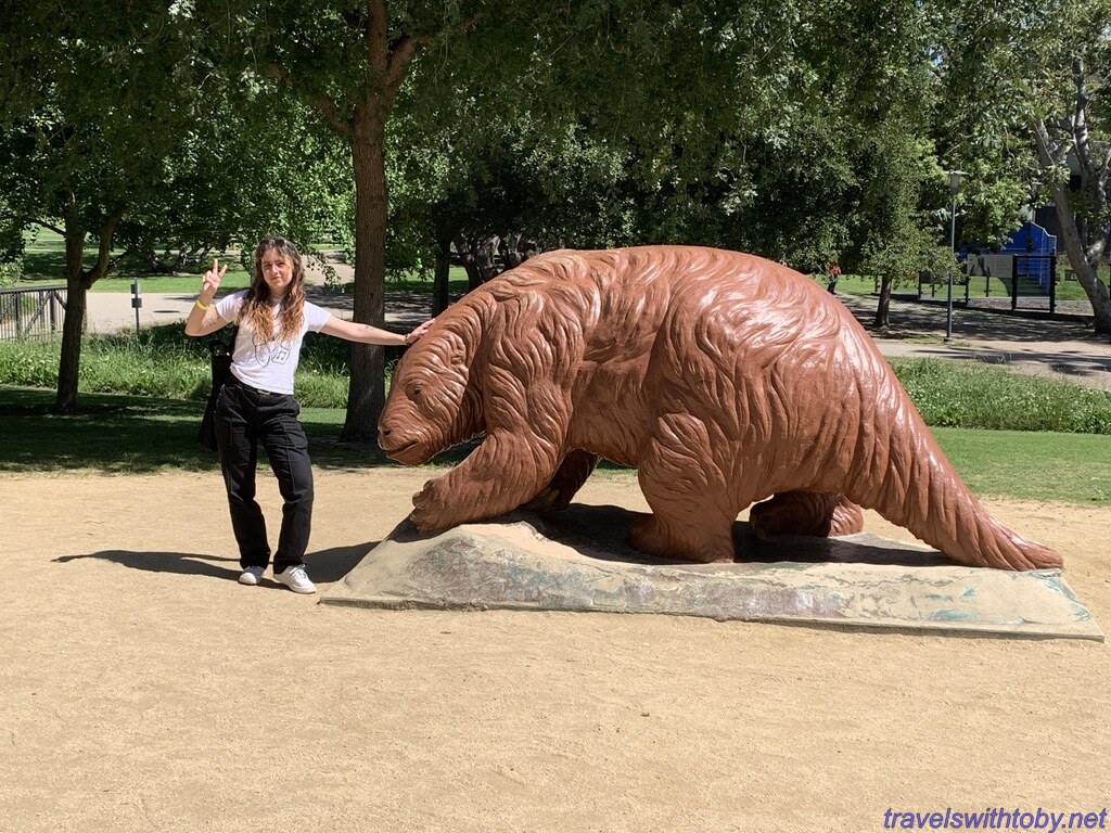 Since the La Brea tar pits are right next door we took a walk through the gardens, stopping at Urban Light by Chris Burden outside the L.A. County Museum of Art on the way, then wandered around looking at the tar pits. It’s a very strong smell of tar which was a bit overwhelming so we didn’t linger too long there.