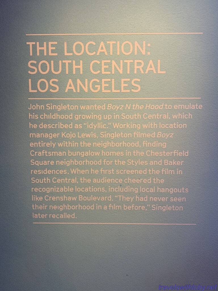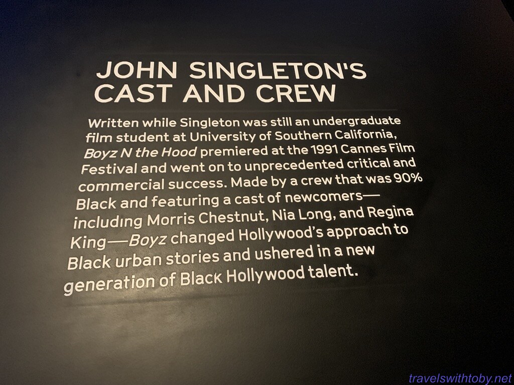 On to the Boyz N the Hood exhibit where I learned a few more things about John Singleton. He wrote the story while still an undergraduate student at the University of Southern California. It premiered at the 1991 Cannes film festival and went on to great success.
