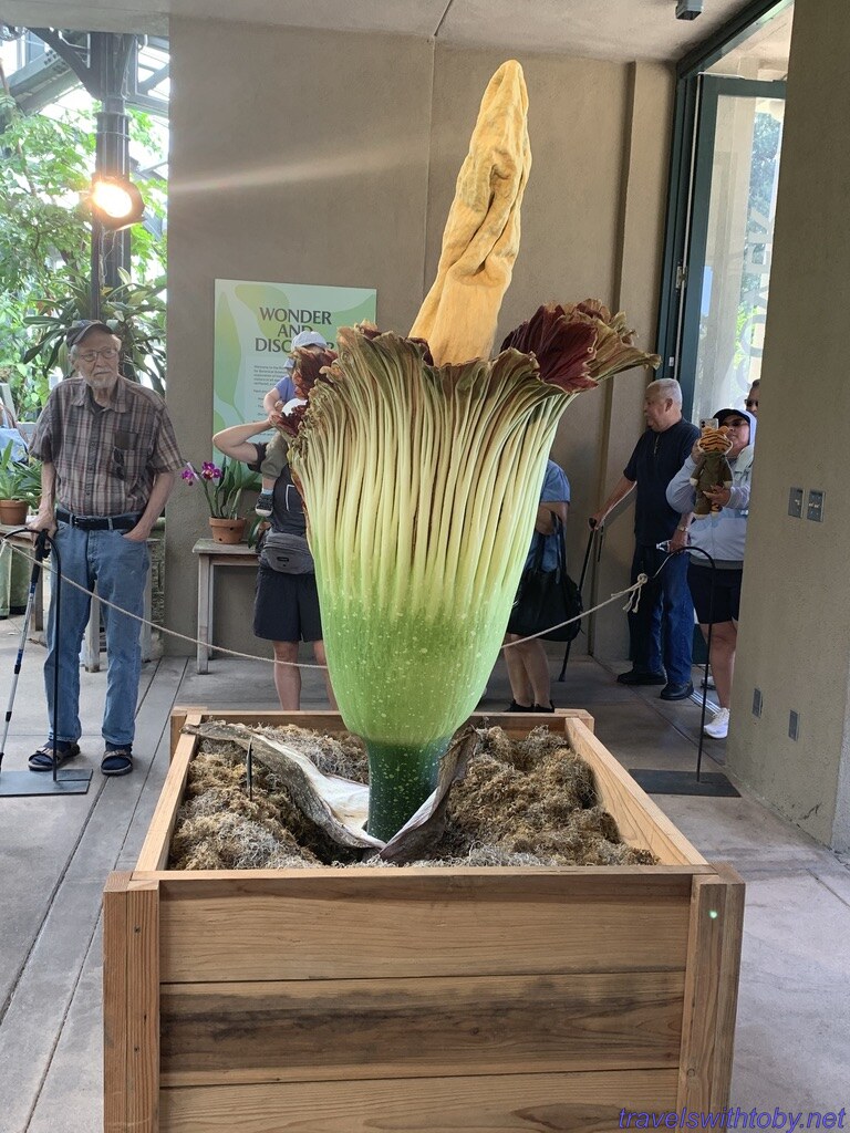 Since corpse flowers only stay open a short time, between 24 and 48 hours, we decided to go on Thursday July 31st just to have the chance to see this rare flower blooming, and don’t forget the smell! We had to purchase our entry tickets for August 1st because they require this for Fridays thru Sundays. And it turned out that my workload was such that we could also go on Thursday just to see, and smell, that rare flower, eat lunch and head home.
