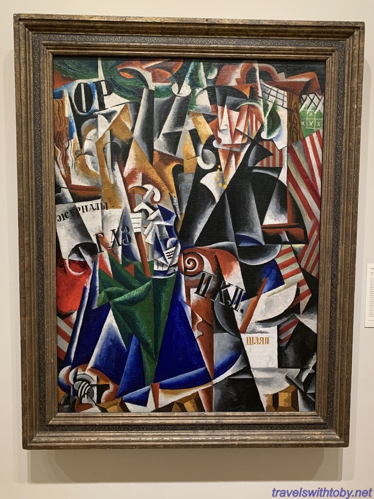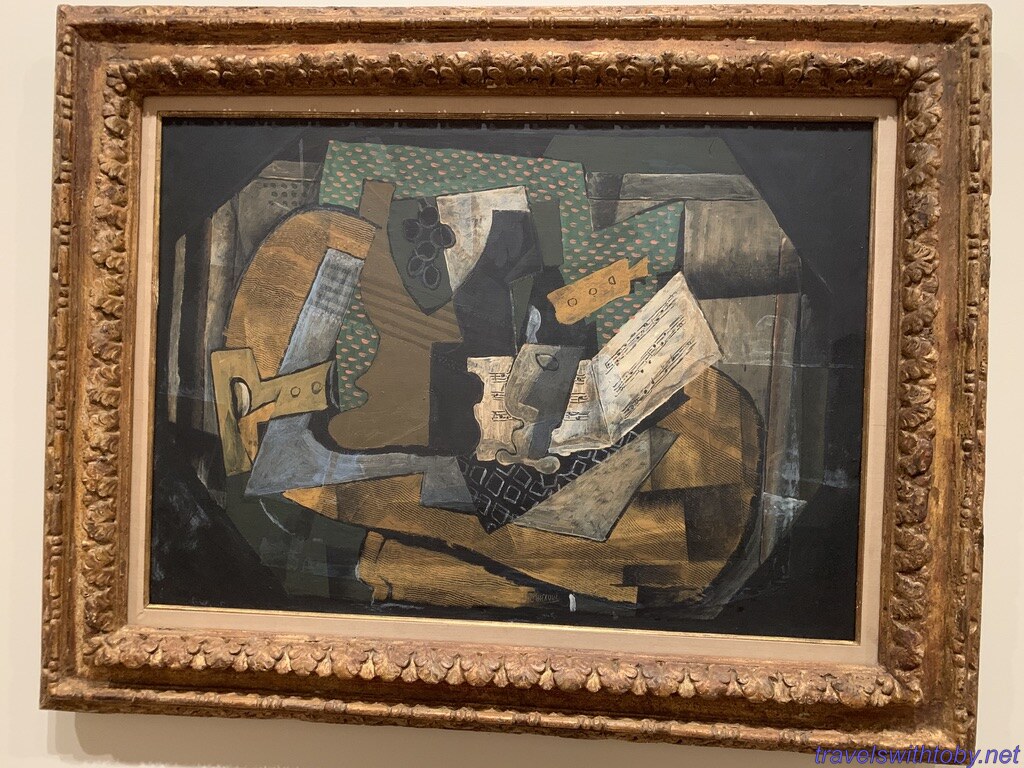 Next a small gallery with Picasso. There was a woman standing in front of Picasso’s portrait Woman with a Book whose outfit closely matched the colors in that portrait so I took her photo as she gazed at the painting.