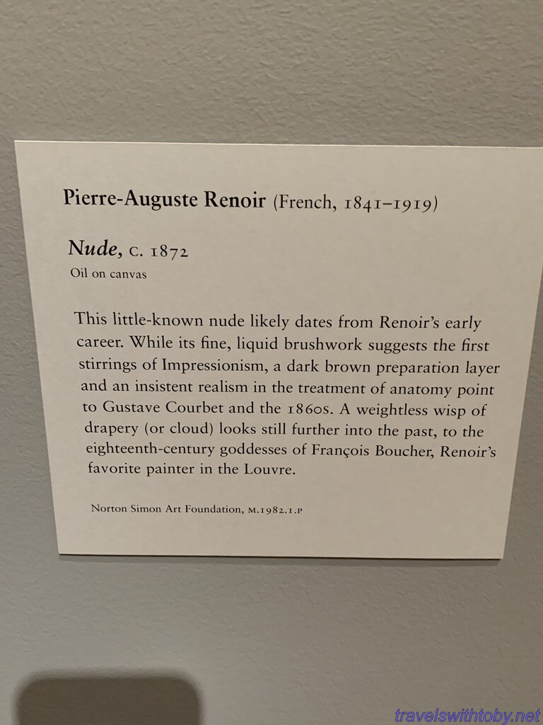We moved on to the 19th century followed by the 20th century. Each century has its own section and this is where we spent the bulk of our time. We saw Degas, Renoir, Van Gogh, Rivera and Matisse. There is a lot of Degas with portraits as well as sculptures and I’m a huge fan. First a gallery of Degas and this is only a representation, not the entirety of the Degas at the Norton Simon.