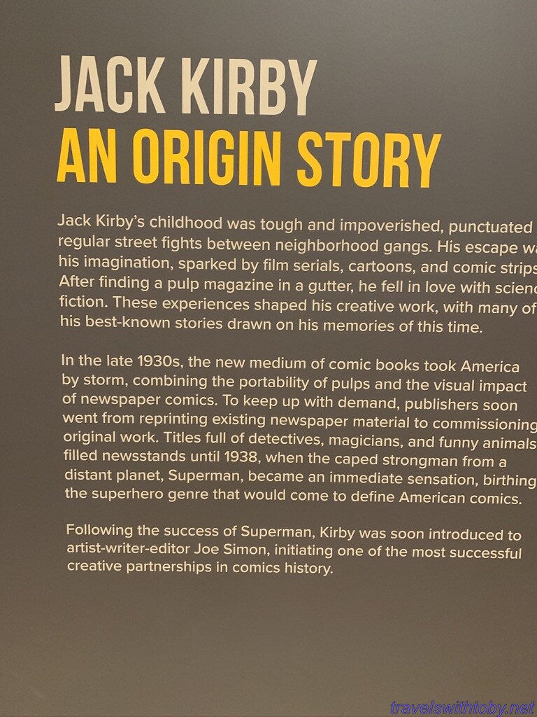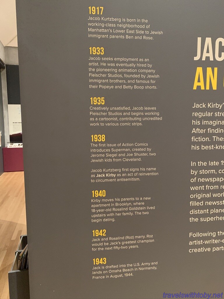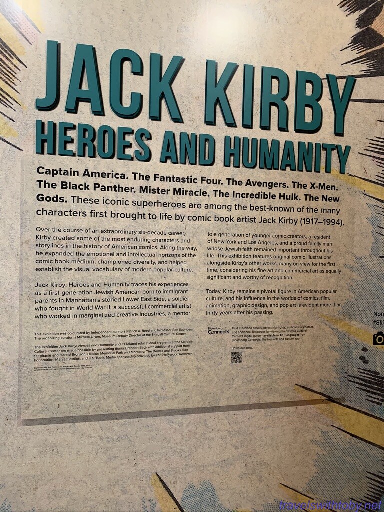 The Skirball Cultural Center focuses on Jewish history and traditions. Jack Kirby was Jewish and you will see some photos below that reflect this. This is Skirball’s mission statement: