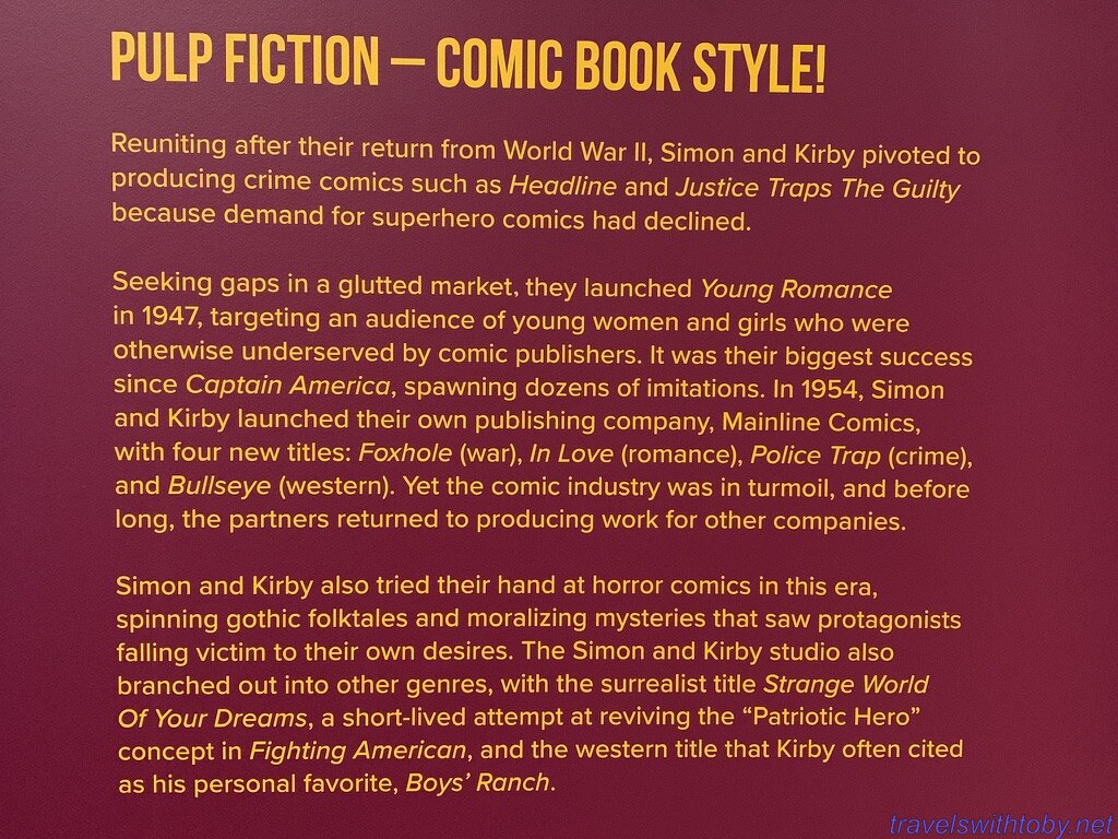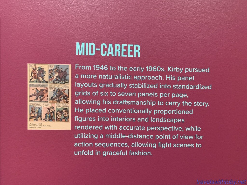 The exhibit was all encompassing examining Jack Kirby’s work, from his early career in New York to the later years after he moved to California. The man was very talented indeed!