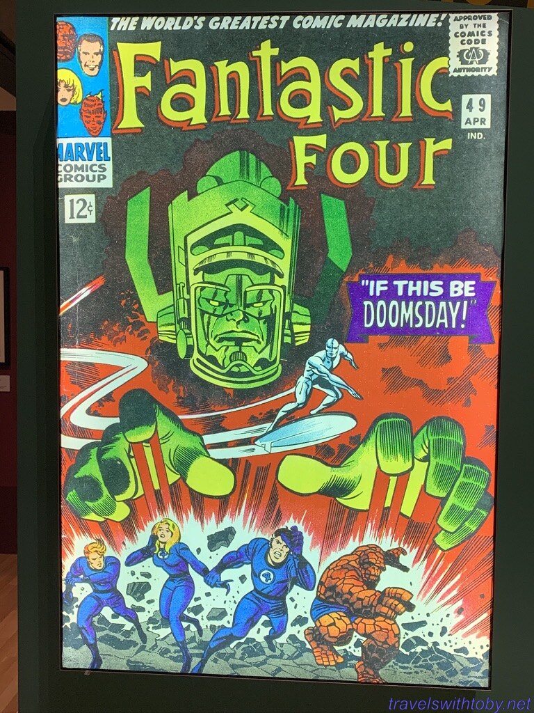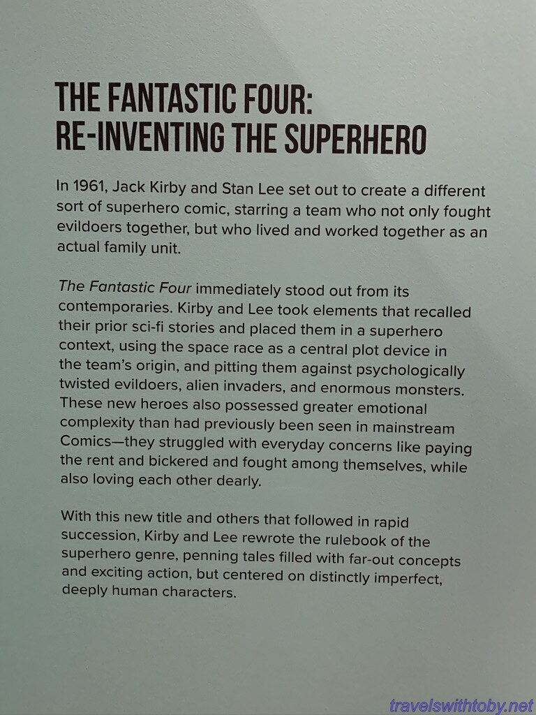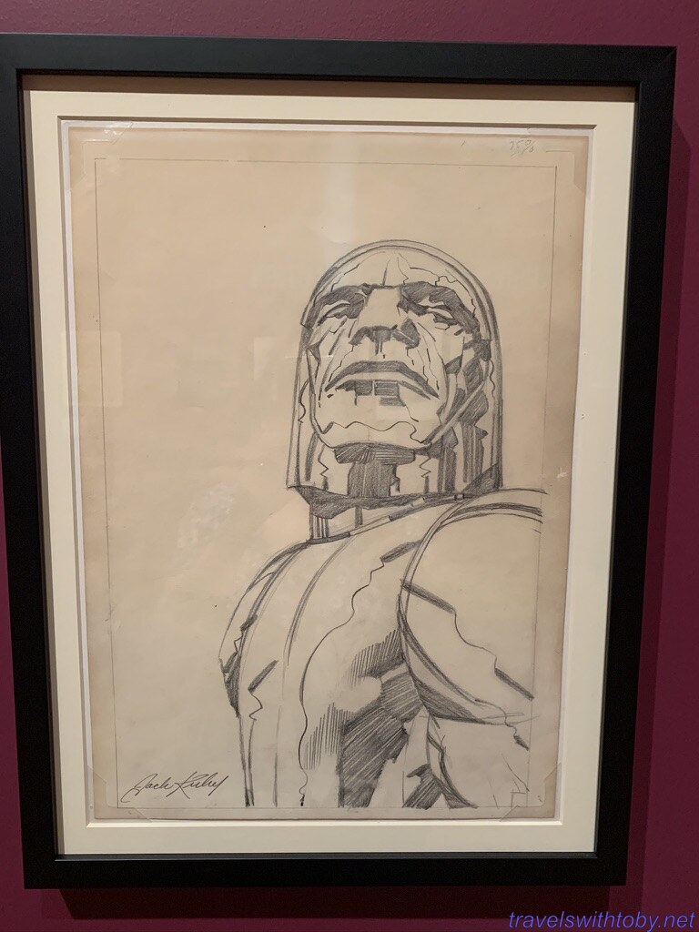 At the end of February we enjoyed an exhibit of Jack Kirby’s lifetime of work. Jack Kirby of Marvel Comics as well as DC Comics fame. Jack Kirby of Captain America, The Avengers, Black Panther and the Fantastic Four fame, to name a handful. Because we’re AAA members we receive their monthly magazine. I was perusing this publication when I saw that the Jack Kirby exhibit was coming to an end. I didn’t know who he was but I felt sure that hubby would and sure enough, he did. He used to read these comics as a youth. So we planned an excursion just days before the exhibit ended and we’re so glad we did.